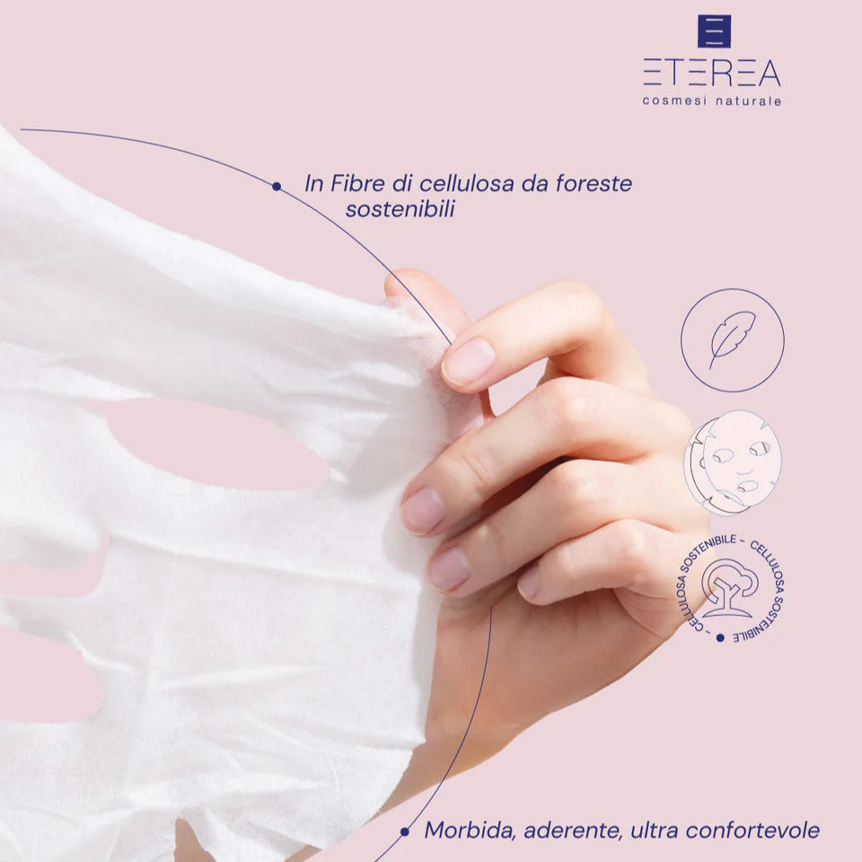 Εφαρμόζεται τέλεια στο πρόσωπο απελευθερώνοντας ενυδατικά και προστατευτικά συστατικά. Με pullulan με συσφικτική δράση, βιταμίνη Ε για αντιοξειδωτική δράση, φυτικά σάκχαρα που αποκαθιστούν την υγρασία και υαλουρονικό οξύ πολλαπλών μοριακών βαρών για επιδερμίδα γεμάτη, βελούδινη και λαμπερή.